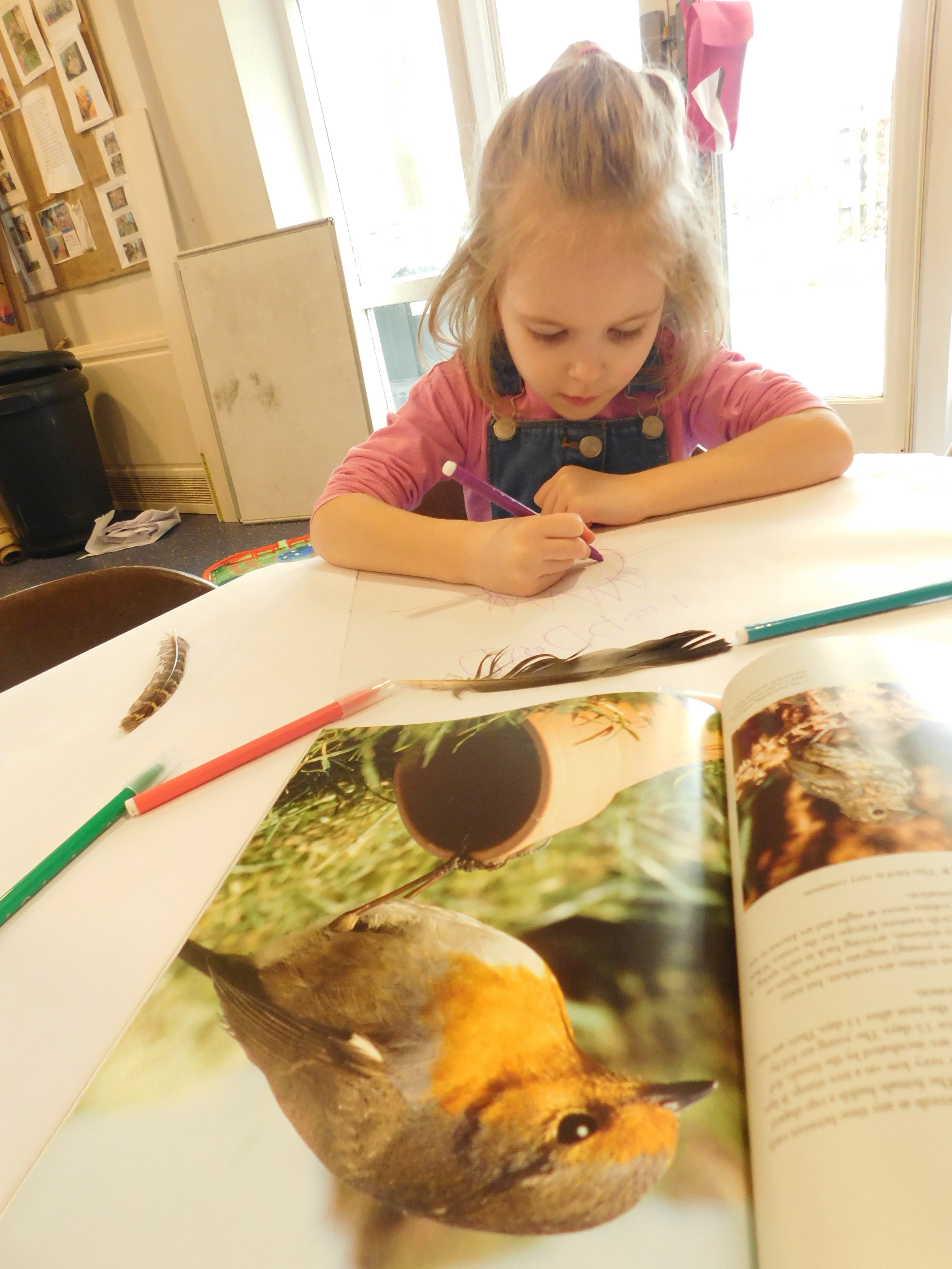 The older children have been talking about wild birds, looking at books and designing their own to take home.