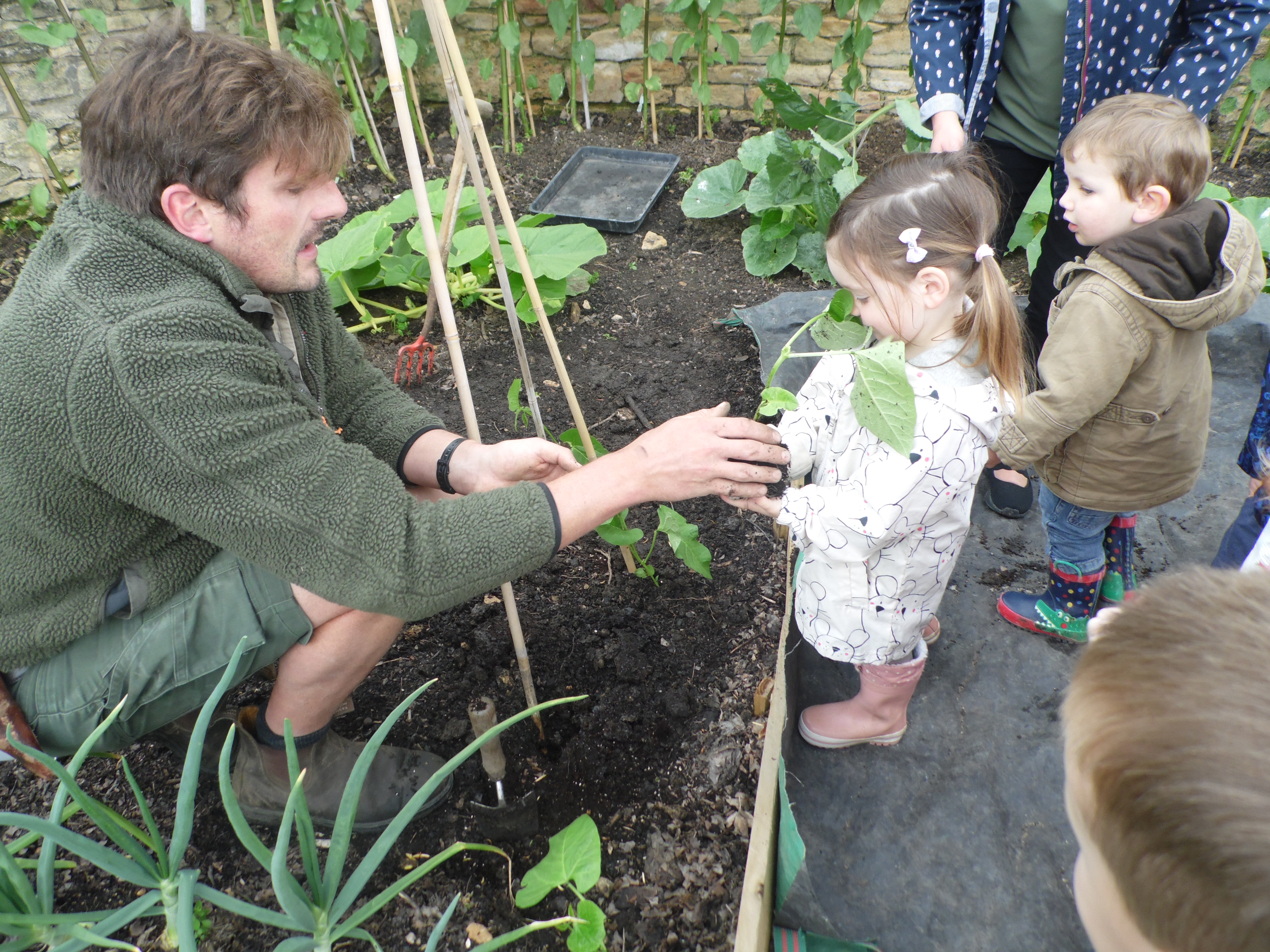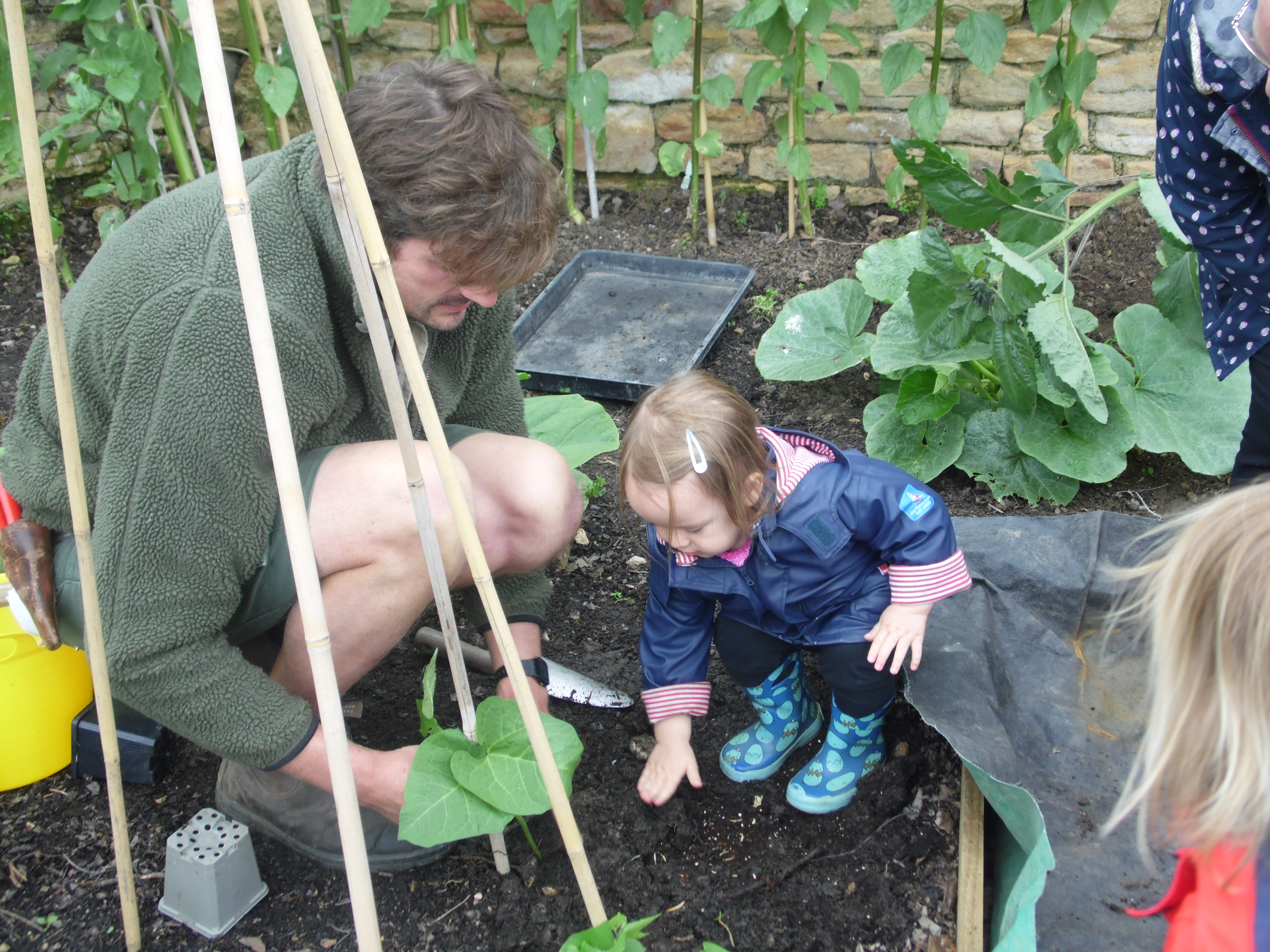 Whilst we were in the gardens Harry asked us to help plant some beanstalks.