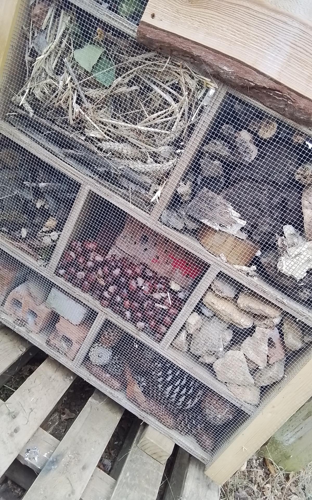 We then carefully placed our items into the bug hotel ready for the bugs to move in.