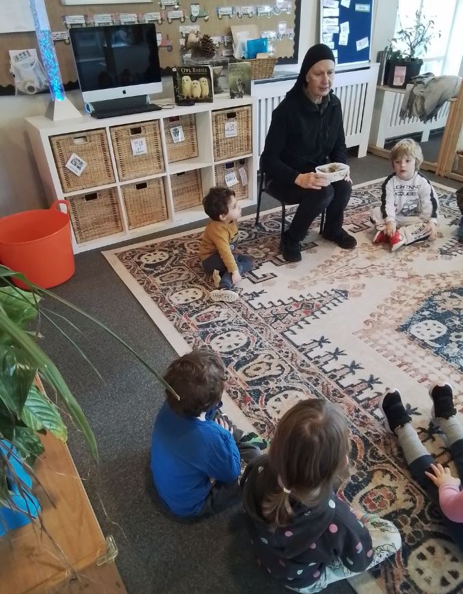 Later that morning, the children worked together to make their own bird feeders to hang in our garden. Using recycled materials, lard and bird seed, they enjoyed taking part in this eco-friendly activity and learning how we can help care for wildlife. We are very excited to see which birds will visit our garden and hope the feeders attract lots of feathered friends.