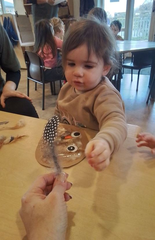 Meanwhile, our Babies have been enjoying the story ‘Owl Babies’. They listened carefully to the story and explored their creativity by making their own deconstructed owls using a variety of textures and materials. This sensory activity supported their fine motor skills and allowed them to explore the story in a hands-on way.